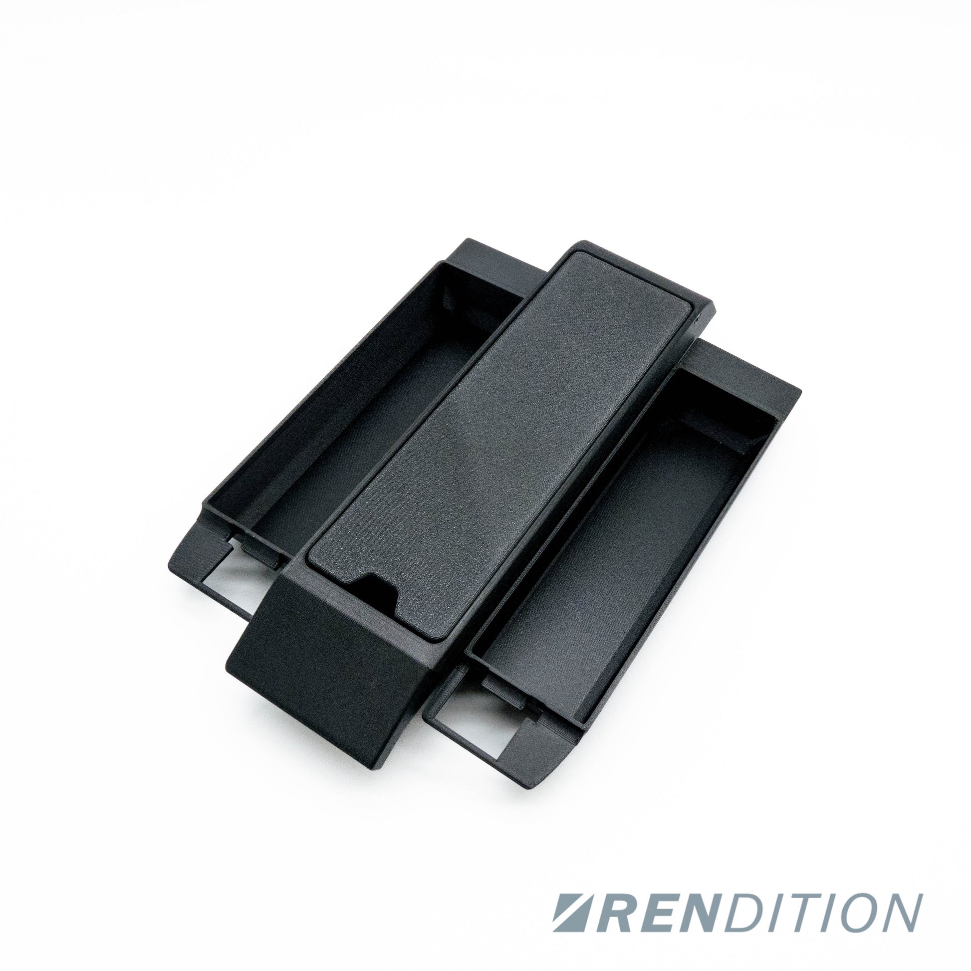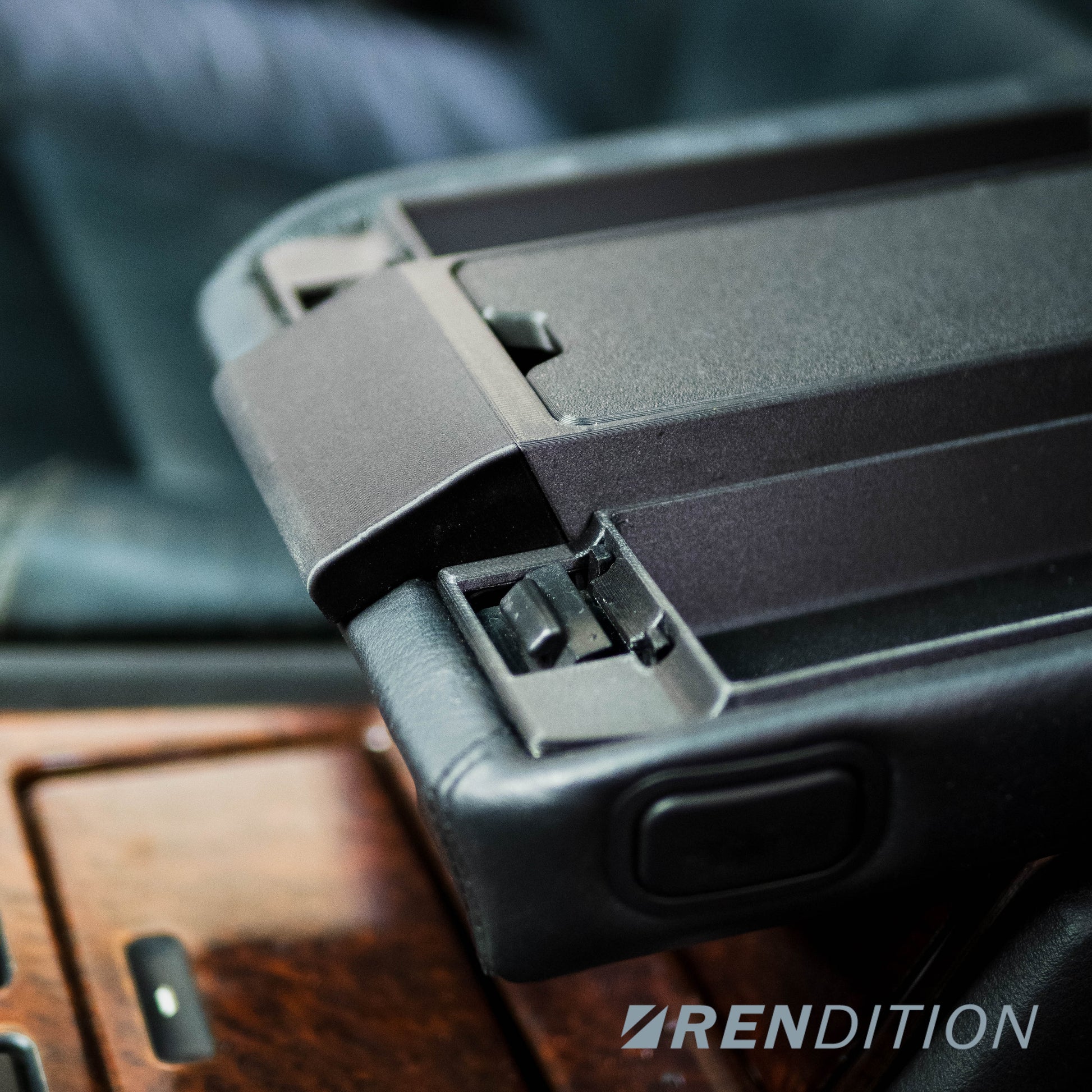 An OEM+ E38 armrest upgrade that provides more storage space and practicality than the original car phone. Designed as a direct replacement for your E38 car phone, this product utilizes its four original mounting points for installation—no drilling or modifications required.