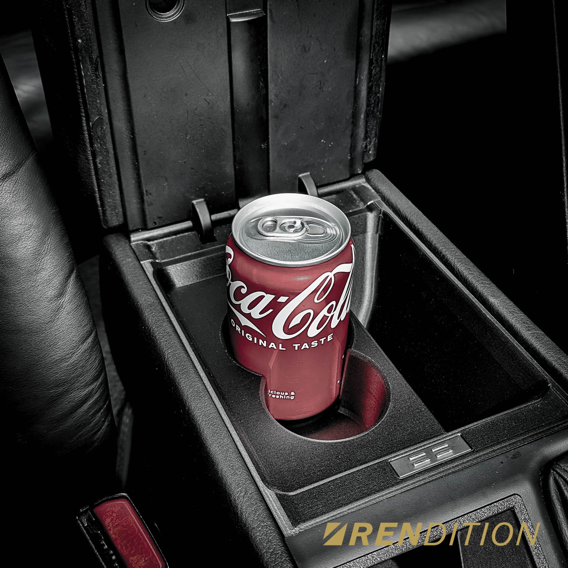 This replacement adds a screw hole to further strengthen the tray to stay in its place. It does not rely on the center console trim panel to hold it in place. Two 58mm/65mm cup holders can also be added to accommodate most canned drinks and coffee cups.