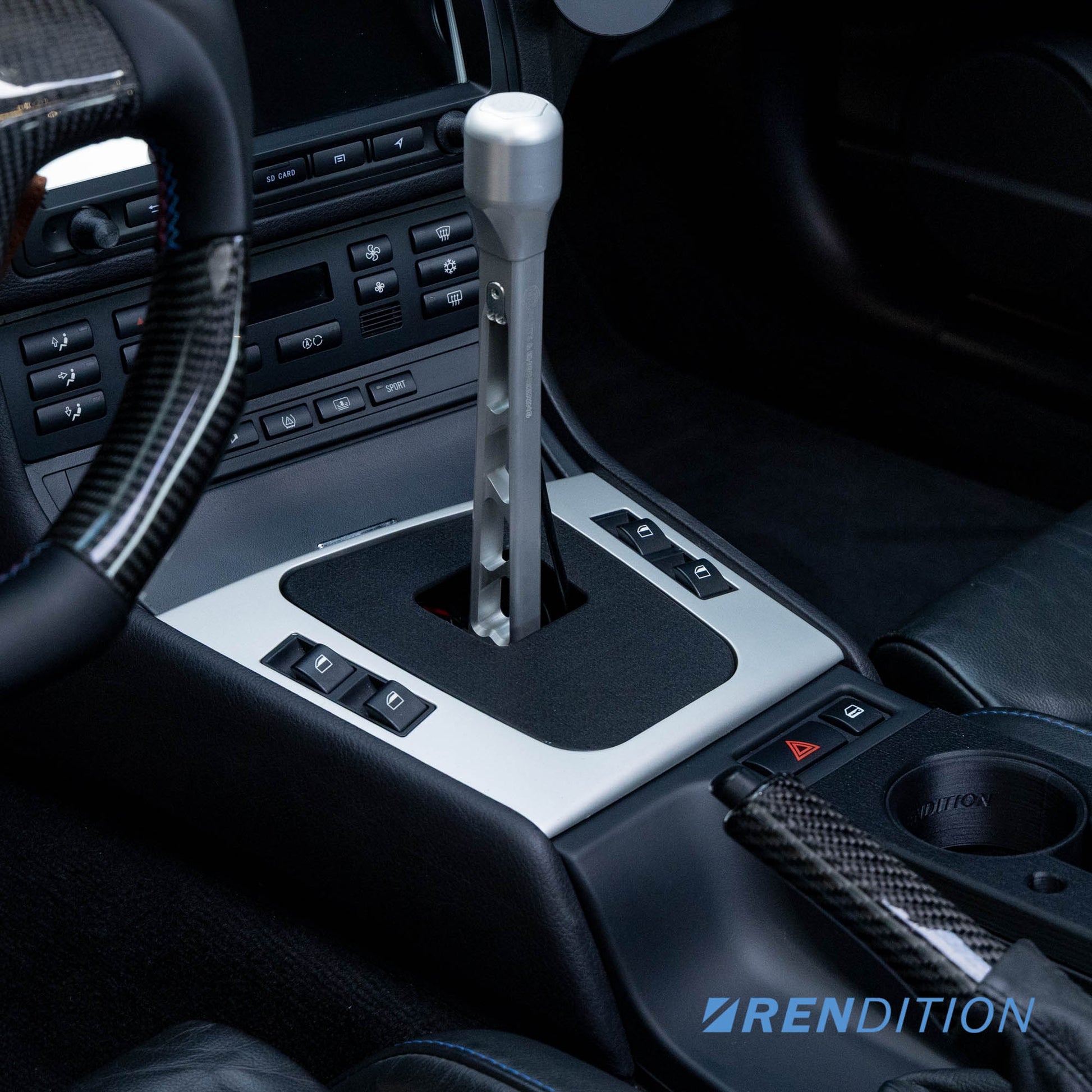 The Rendition BMW E46 Shift Boot Cover is a precision snap-in panel designed to cleanly cover that gap, restoring an OEM+ finish to the center console after shifter upgrades.